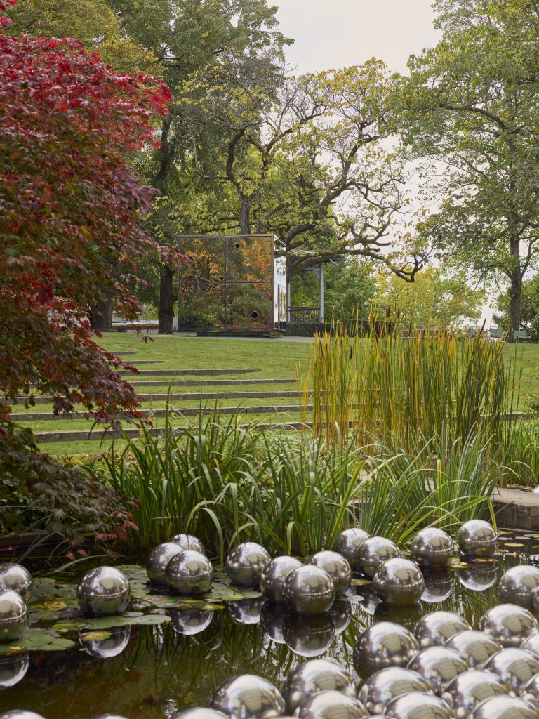 Edelstahlkugeln. Courtesy Ota Fine Arts, David Zwirner and Victoria Miro. Louisiana Museum of Modern Art / Photo: Kim Hansen © YAYOI KUSAMA