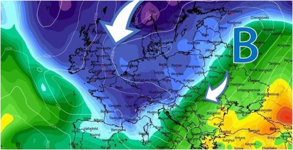 Se ciò dovesse avvenire è lecito attendersi un abbassamento drastico delle temperature con valori termici che finiranno sotto le medie climatiche, specie al Nord e sulle regioni Centro: ecco servita la prima irruzione fredda della stagione. Le correnti fredde in ingresso dalla Porta del Rodano (Francia sudorientale) favoriranno la formazione di un secondo vortice ciclonico sui nostri mari in grado di scatenare precipitazioni intense, anche sotto forma di nubifragio e violente raffiche di vento. Irruzione fredda di aria polare dal Nord Europa fino al bacino del Mediterraneo