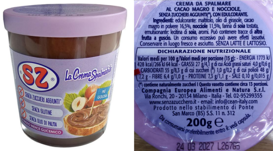 Il richiamo della crema spalmabile SZ
