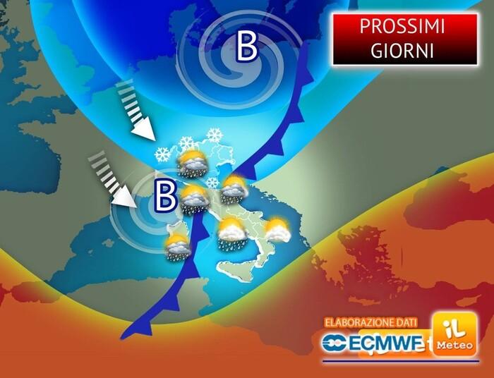 Dopo un inizio di settimana già particolarmente agitato sul fronte meteo, nei prossimi giorni avremo a che fare con una vera e propria irruzione invernale con tanta pioggia e anche con l’arrivo della neve.