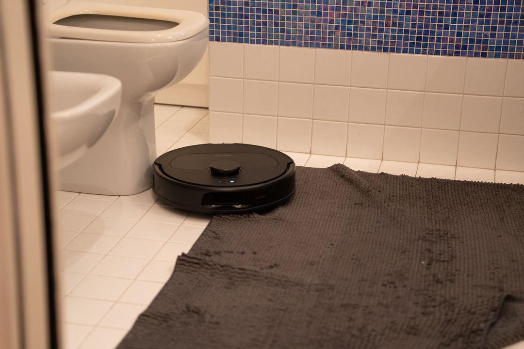 Anche la prova del “tappetino del bagno”, un banco di prova dei più difficili per i robot che testiamo, è stato superato: il robot ha provato ad aspirare sul tappeto-trappola, riuscendoci anche in buona parte.