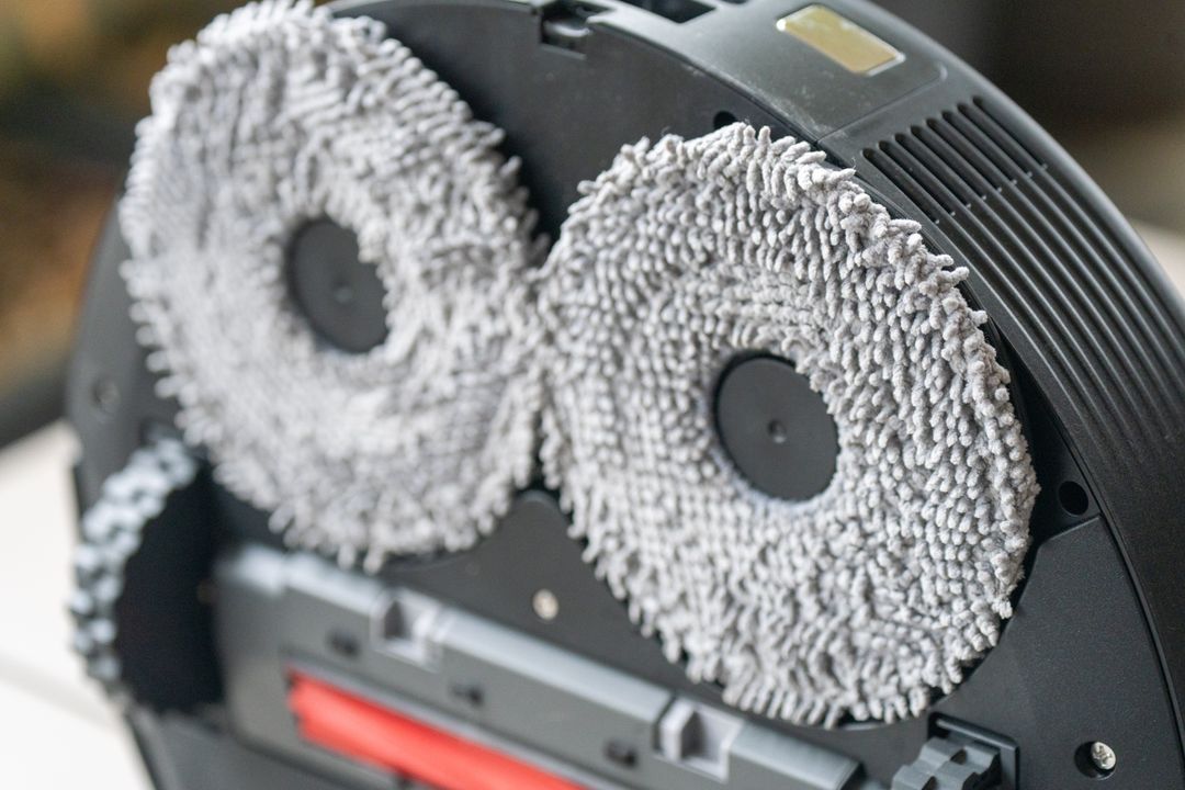 Questi mop possono raggiungere una velocità di rotazione fino a 200 giri al minuto e hanno la capacità di sollevarsi automaticamente fino a 1 cm per evitare di bagnare i tappeti o quando il robot sta solo aspirando.