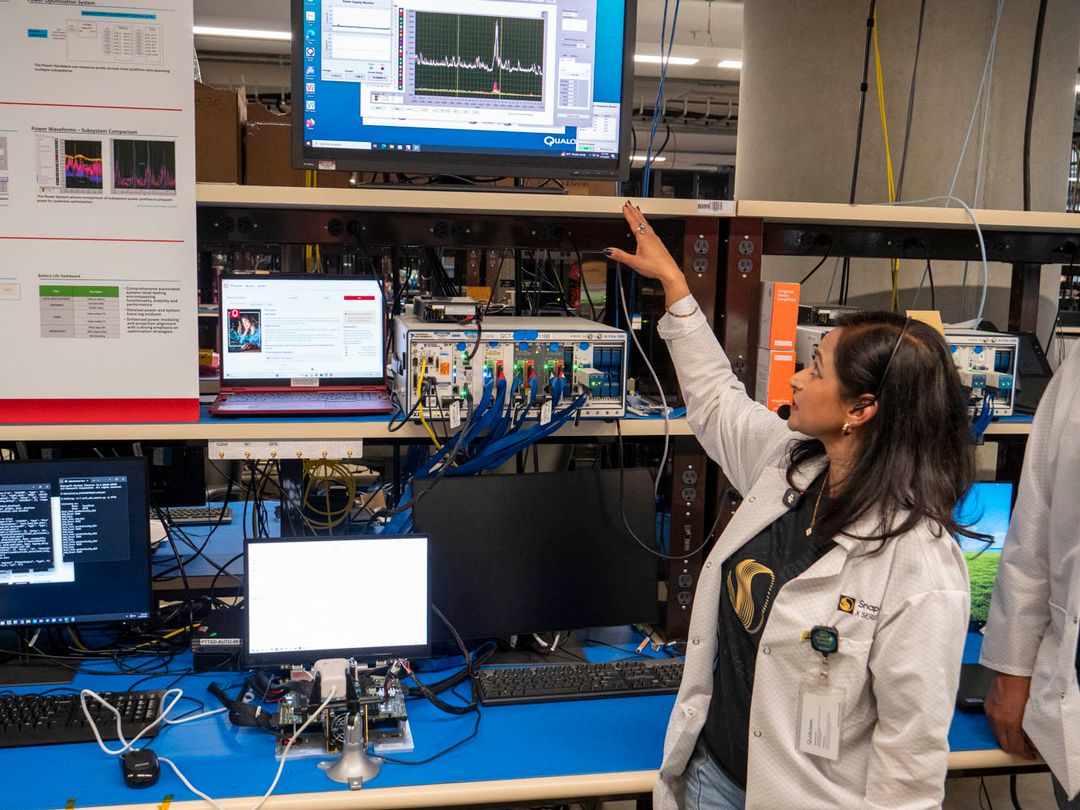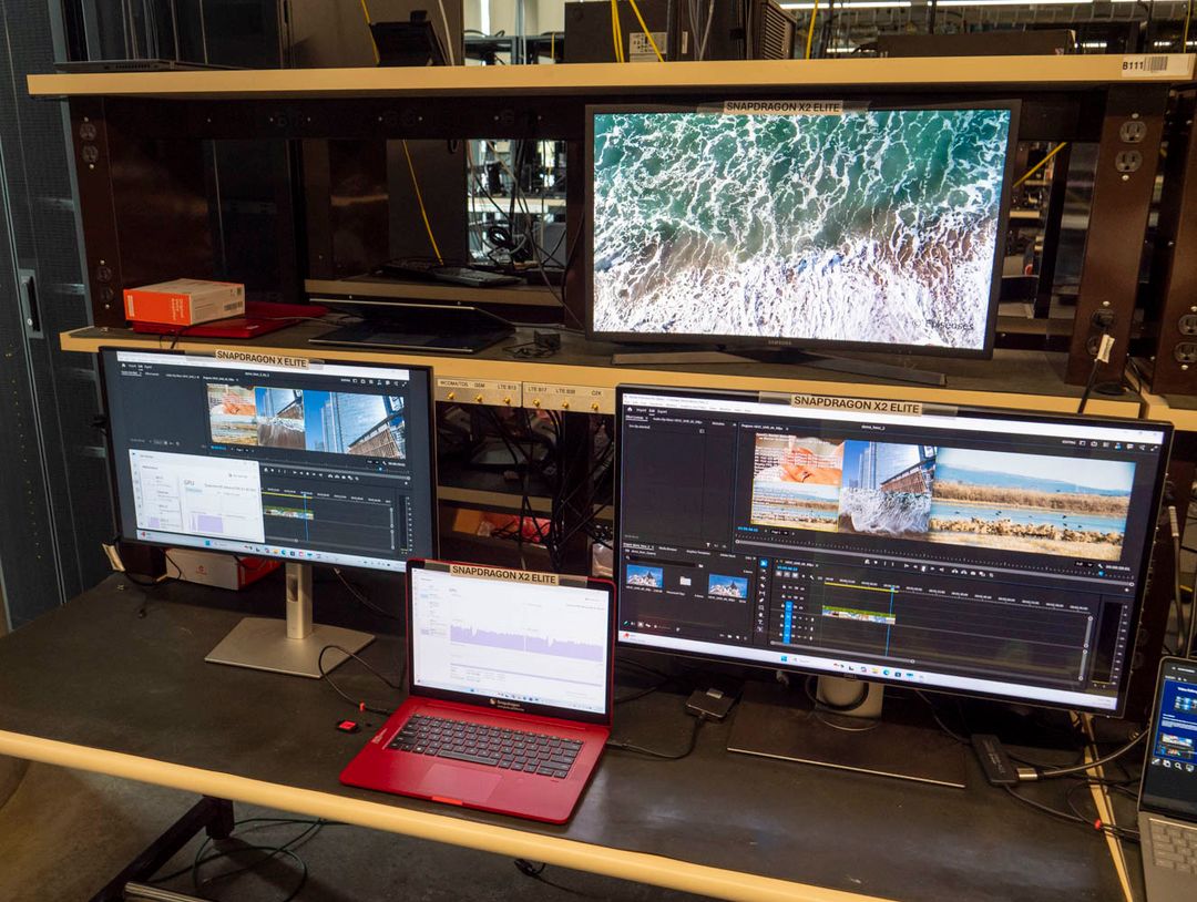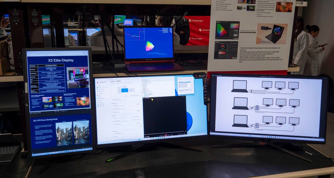 Qualcomm, in laboratorio, ci ha spiegato che non solo si sono preoccupati di gestire più monitor per chi ha la necessità di gestire configurazioni multiple ma ha anche trovato un modo facile per abilitare la calibrazione hardware di fabbrica su ogni display. Ha creato una interfaccia hardware che i produttori possono usare per salvare direttamente nella Display Processing Unit la calibrazione dello schermo che può essere eseguita su ogni singolo modello durante la fase di produzione. Sta al produttore decidere se implementarlo, ma avrebbe costi bassissimi e ogni display avrebbe una accuratezza cromatica che oggi solo i laptop pensati per i content creator, e venduti come tali possono vantare.