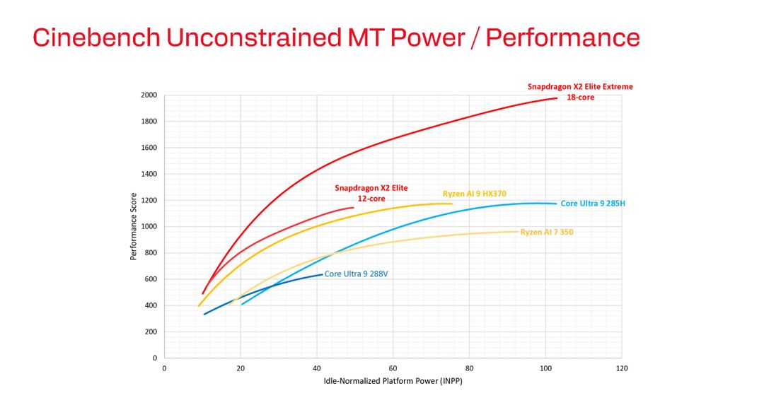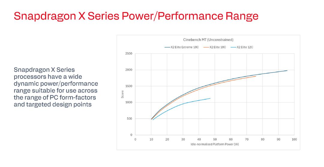 Secondo Qualcomm le misure fatte confermano che lo Snapdragon X2 Elite può offrire prestazioni elevate anche in chassis sottili o con sistemi di raffreddamento non particolarmente generosi, al contrario dei concorrenti che richiedono anche una doppia ventola per evitare un termale throttling aggressivo.