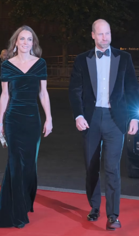 Per la serata di gala Kate Middleton ha scelto un abito di velluto verde smeraldo firmato dalla casa di moda tedesca specializzata in creazioni da sera, Talbot Runhof, molto amata dalla principessa Laurentien dei Paesi Bassi e da Maria Teresa del Lussemburgo. Per completare il suo look, la principessa del Galles ha indossato delle décolleté verde bosco abbinate di Manolo Blahnik e ha completato il look con una mini pochette a specchio decorata con cristalli di Jenny Packham. Il principe William non era certo da meno: per lui uno smoking con una giacca di velluto nera che cementavano la sintonia della coppia avvolta in un tessuto morbido ed elegante, ideale per le serate di gala alla vigilia delle festività.