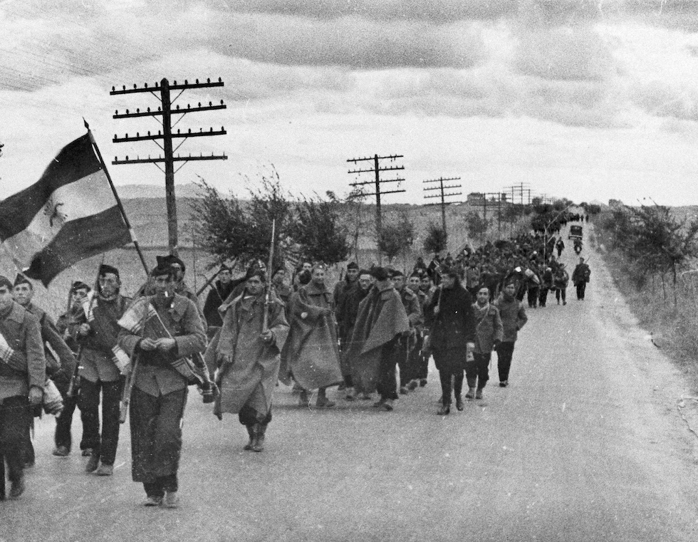 La Legione del generale Francisco Franco su una strada che porta a Madrid il 19 novembre 1936 (AP Photo)
