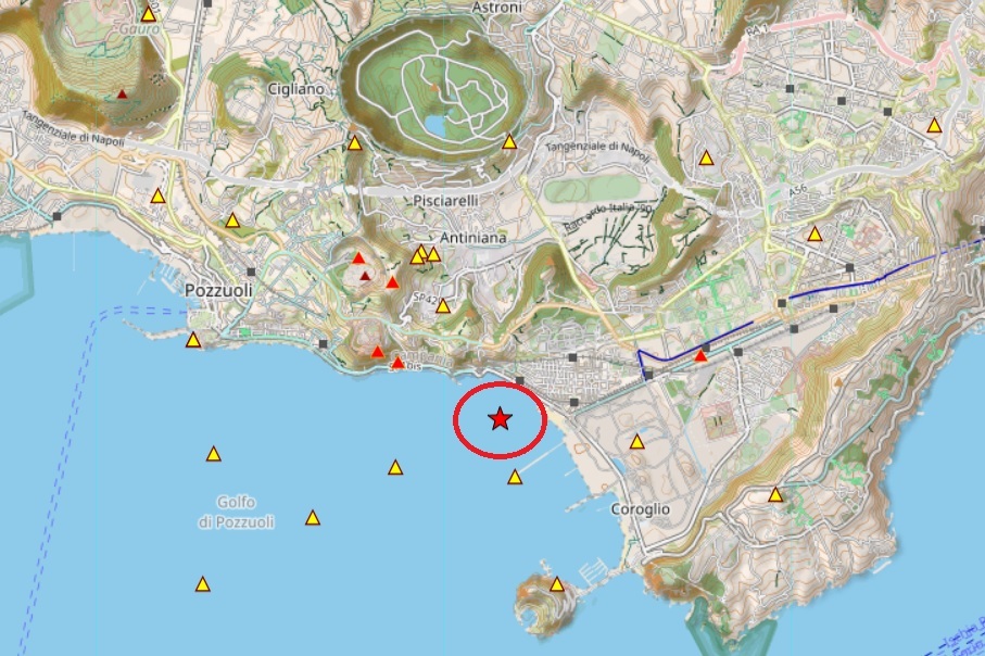 Nel pomeriggio di oggi un altro sisma aveva colpito la zona. Come riportato da Ingv, un terremoto di magnitudo Md 2.2 è avvenuto nella zona Campi Flegrei alle 14 ad una profondità di 3 km.
