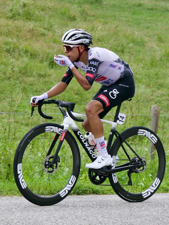 Sono due: uno è Tadej Pogacar e l’altro Jhonatan Narvaez, veniamo entrambi dall’Ecuador e siamo molto amici ed è una bravissima persona. Ho avuto modo di allenarmi con lui a gennaio, durante la preparazione, è impressionante perché va davvero forte ma ci siamo divertiti.