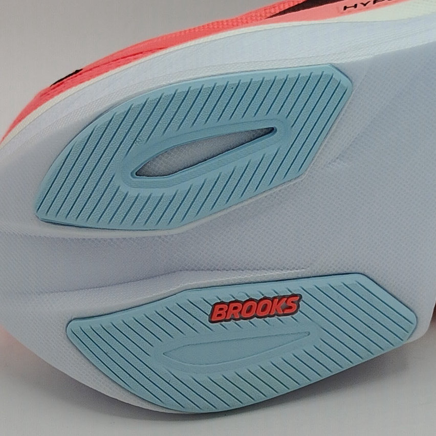 Il pilastro portante è l’intersuola a doppio strato, in comune con Hyperion 3. Già Brooks aveva introdotto la mescola DNA Flash v2 nel precedente modello Hyperion 2, con un deciso passo in avanti rispetto all’immediato passato in termini di ritorno dell’energia. Questo approccio ha allineato il marchio agli altri competitor nel settore, ma non bastava, perché con la terza generazione ha compiuto il decisivo balzo in avanti: l’utilizzo di una mescola più morbida e reattiva nella parte superiore, più vicina al piede, e di una più densa e compatta nella parte inferiore, per raggiungere il necessario grado di stabilità.