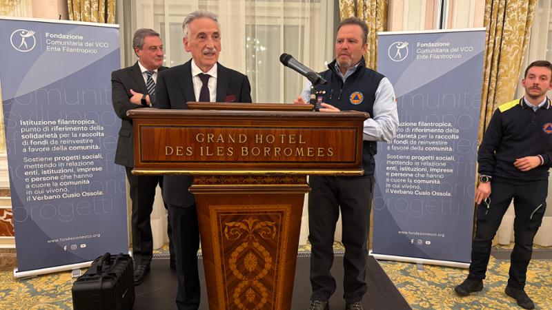 È stato annunciato anche il dono di 4.500 euro alla comunità carceraria di Verbania per l’acquisto di una macchina ricamatrice professionale per il laboratorio di sartoria ed è stato consegnato al presidente del coordinamento territoriale dei volontari di Protezione civile, Francesco Cotti, il drone con termocamera acquistato anche con il contributo del Lions club di Omegna.