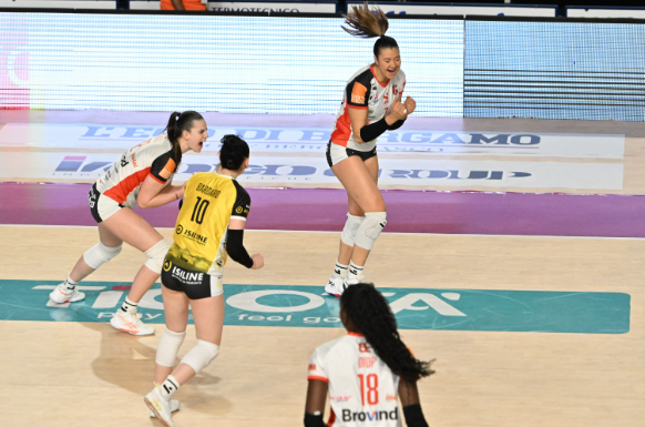 Premiata MVP del match l’opposta Kendall Kipp con 28 punti (32% in attacco), di cui 2 muri e 1 ace. In doppia cifra per Bergamo anche Mosser con 14 e Manfredini 10. Top scorer per le Gatte invece Pucelj con 22 punti, seguita da Diop (19), Marring (15) e Keene (10). Buona la prova di Allaoui con 6 punti di cui 1 ace e 2 muri e anche di Bardaro con 75% di positiva e 50% di perfetta.