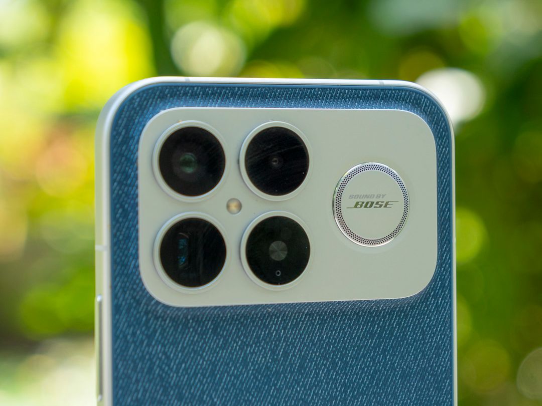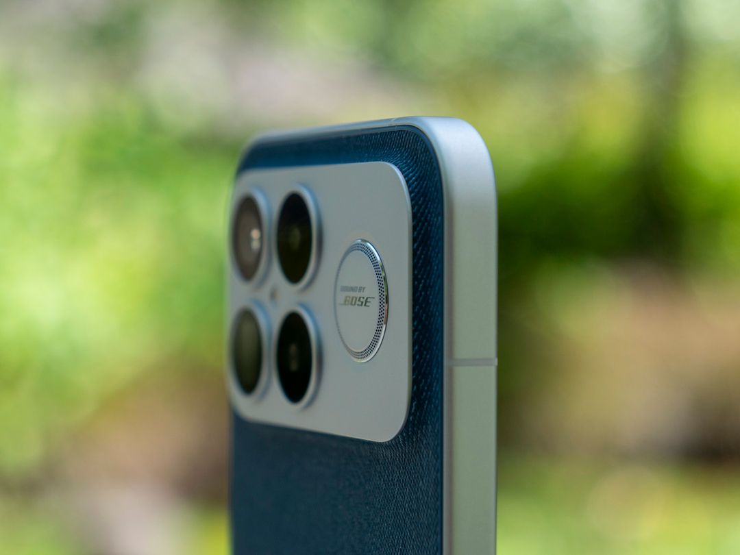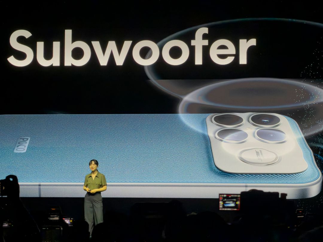 Se Apple ha dovuto ricorrere al blocco side by side per gestire lo sbalzo del nuovo tele 4x a tetraprisma, POCO ha usato la parte destra per inserire un elemento unico nel panorama degli smartphone, un subwoofer posteriore firmato da Bose.