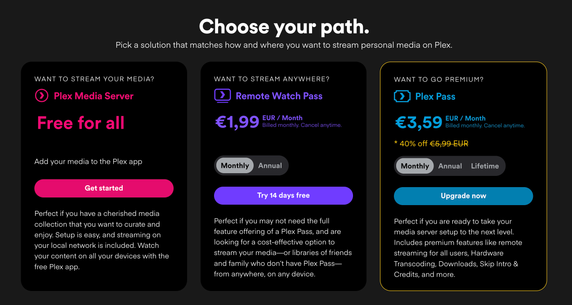 La transizione è iniziata con il post pubblicato a marzo, in cui Plex ha chiarito che la riproduzione da una rete esterna non sarebbe più stata gratuita. Il cambiamento è diventato effettivo il 29 aprile, quando l’azienda ha attivato due modalità distinte per continuare a utilizzare il playback remoto: il Plex Pass e il nuovo Remote Watch Pass.