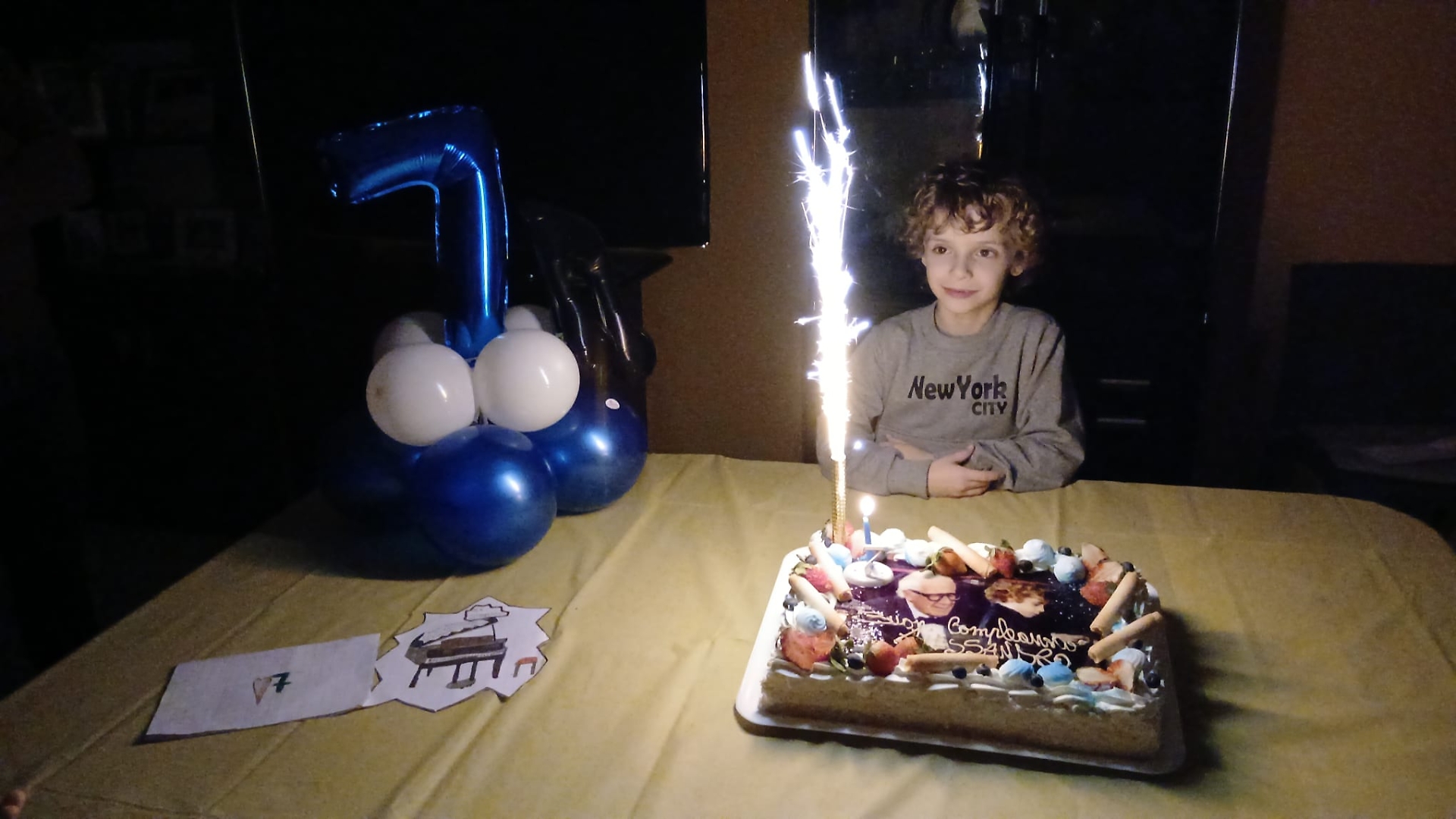 Il bimbo prodigio ha spento 7 candeline domenica scorsa. Sulla dolcissima torta di compleanno c’erano le immagini di lui mentre suona a Sanremo e quella di Peppino di Capri. La sintesi di un 2025 fantastico per il piccolo Alessandro Gervasi e la sua famiglia: il film nel quale ha interpretato il cantante da bambino e l’esibizione al Festival di Carlo Conti.