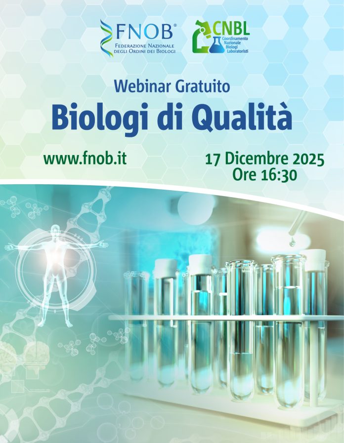 La Federazione Nazionale degli Ordini dei Biologi (FNOB), attraverso il Coordinamento Nazionale dei Biologi Laboratoristi (CNBL) Area Tematica “Certificazione di Qualità”, annunciano il lancio ufficiale del progetto “Biologi di Qualità”, un’iniziativa dedicata a formare, orientare e accompagnare la nuova generazione di biologi verso le professioni emergenti nel mondo della Qualità. L’evento inaugurale – Webinar di Lancio – si terrà mercoledì 17 dicembre 2025, dalle ore 16:30 alle ore 17:15 e rappresenterà il primo passo di un percorso nazionale di divulgazione e crescita professionale.