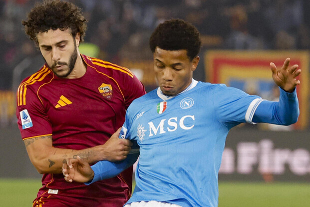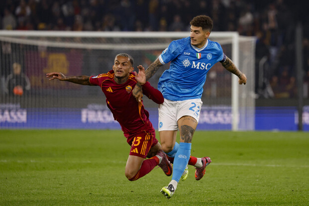 Con l’ex Brighton giocano Soulé e Pellegrini. In mezzo Koné stringe i denti e parte dal 1′ nonostante il ko nel match di Europa League. Importante rientro dietro per Hermoso. Da parte sua il tecnico del Napoli Conte è sempre alle prese con tanti infortuni e conferma la stessa squadra della vittoria in Champions col Qarabag: difesa a tre col tridente Neres, Hojlund e Lang in attacco. Ai box ci sono De Bruyne, Anguissa, Lukaku, Meret, Gilmour e Gutierrez. La prima chance della partita è per gli azzurri Napoli: Neres lancia in porta Nang centralmente in campo aperto, ma Svilar è rapidissimo nell’uscita fuori area e lo ferma senza usare le mani. Sul prosieguo dell’azione Hojlund raccoglie palla e prova da 30 metri un difficile pallonetto: Svilar riprende posizione e blocca il pallone. Nella prima parte del match meglio la squadra di Conte pericolosa prima con Di Lorenzo e poi con Lang. Solo alla mezz’ora il primo vero affondo della Roma con Pellegrini che sfonda sulla sinistra saltando Beukema e penetrando in area, poi cross basso per Ferguson, anticipato poco prima della deviazione vincente sotto porta. I giallorossi continuano a premere ma nel loro momento migliore arriva il gol del Napoli in contropiede. Tutto nasce da un recupero palla al limite dell’area di Rrahmani su Koné per cui la Roma ha protestato molto per un presunto fallo sul centrocampista francese. Da lì via alla ripartenza con Neres che scambia con Hojlund e viene lanciato in porta e tutto solo davanti a Svilar non sbaglia.