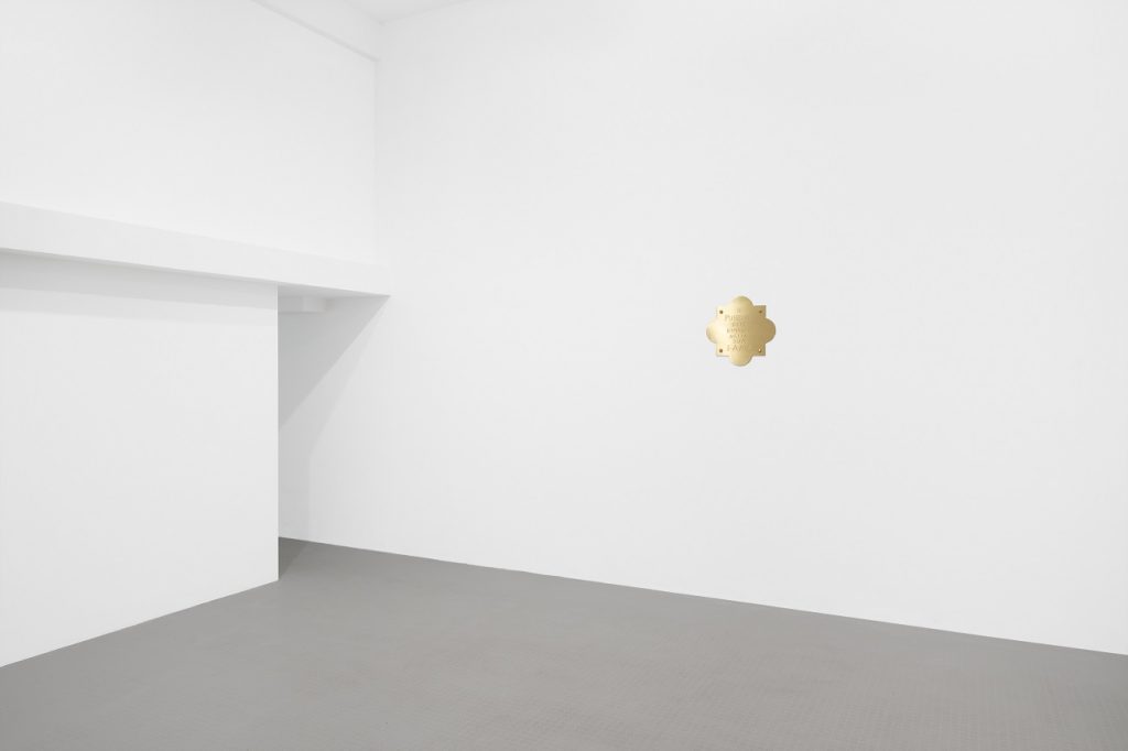 Marcello Maloberti, INCIPIT, 2025. Four brass plates, 45 × 45 × 0,5 cm each. Courtesy of the Artist and Galleria Raffaella Cortese, Milan – Albisola. Photo: t-space