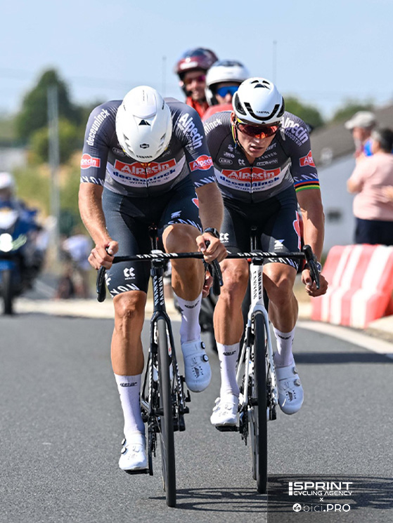 Mi è sempre piaciuta, fin dai loro inizi. Nonostante non avessero e non abbiano tutt’ora un budget esagerato, in corsa io li ho sempre visti muoversi molto bene. Se avessi una squadra mia, li prenderei sicuramente come esempio. Chi li dirige è molto bravo, perché sanno cavarsela sempre bene, soprattutto nelle volate. Se guardiamo i singoli e togliamo dal mazzo VdP e Philipsen, non è che ci siano nomi altisonanti, però nel loro caso è l’atteggiamento che fa la differenza.