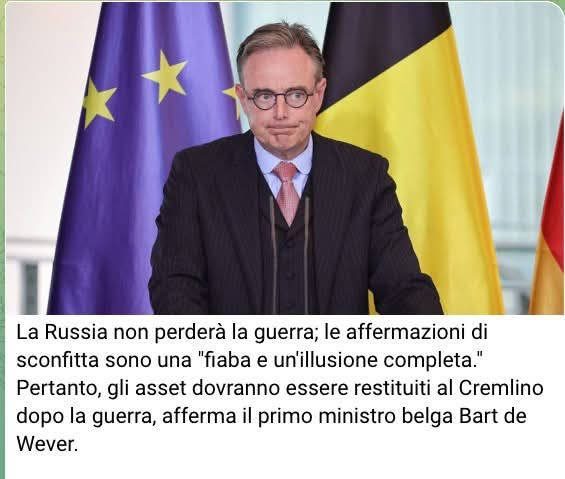 Nel frattempo la stampa “europeista” e guerrafondaia ha già cominciato a classificare il piccolo paese come “il più valido asset russo“. Con tanto di cancelliere tedesco, Merz, che va direttamente dal premier fiammingo per fornirgli qualche garanzia verbale in più. Ma quello: “niet”, vuole garanzie vere, nero su bianco ed esigibili in caso – ormai inevitabile, dice esplicitamente – che Mosca vinca la guerra e rivoglia tutti i suoi soldi indietro.