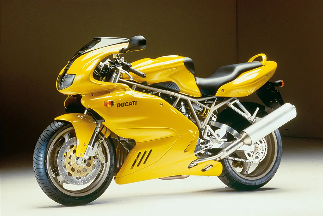 È una gran bella moto da usare su strada, caratterizzata da grande stabilità e un motore che “tira” sempre ed ha cavalli anche in alto. La prima serie è stata prodotta dal 1988 al 1998 ed ha forme tondeggianti caratteristiche di quegli anni. La 900 montava un motore bicilindrico a L due valvole di 904 cm³ derivato dalla serie Pantah, con cambio a sei rapporti; venne affiancata dalla 750 SuperSport, più economica, che invece aveva il motore della Paso 750 con cambio a cinque rapporti e all’anteriore un solo disco freno. La seconda serie. (qui sotto), lanciata nel 1998, manteneva più o meno le stesse caratteristiche ma era stata sottoposta a un profondo restyling ad opera di Pierre Terblanche: arrivarono una nuova carenatura che somigliava parecchio a quella della Ducati Supermono corsa e venne introdotta l’iniezione elettronica al posto dei carburatori. La SS era disponibile sia con la carenatura completa che con la semicarenatura, con il motore di 750 cm³ oppure con la più apprezzata versione di 900 cm³; entrambe rimasero in produzione fino al 2003, quando la gamma fu rimodulata e le nuove 620, 800 e 1000 cm³ sostituirono le 900 e 750.