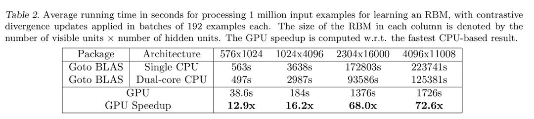 Nel 2009 Rajat Raina, studente nel Computer Science Department di Stanford, Anand Madhavan, ricercatore a Stanford e Andrew Y. Ng, professore a Stanford (e co-fondatore di Google Brain) pubblicarono il paper “Large-Scale Deep Unsupervised Learning Using Graphics Processors“, dimostrando un aumento di velocità pari al 70x nell’addestramento di un tipo di rete neurale che impara a riconoscere pattern e correlazioni nei dati in modo autonomo (Restricted Boltzmann Machines). La misura era stata fatta usando una GPU NVIDIA GTX 280, che aveva stracciato le CPU tradizionali.