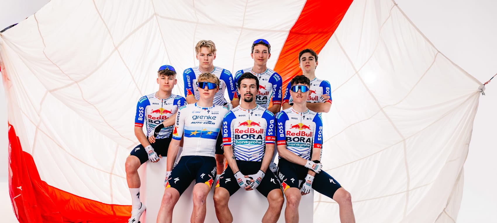 La Red Bull-Bora-hansgrohe presenta la sua divisa da gara per la stagione 2026. La formazione WorldTour tedesca, che annovera fra le sue fila, fra gli altri, Remco Evenepoel, Florian Lipowitz e Primož Roglič, ha deciso di utilizzare una maglia più chiara rispetto a quella vista per larga parte dell’annata appena conclusa; la nuova “livrea”, realizzata in collaborazione con il marchio Specialized è invece molto simile a quella che la Red Bull-Bora-hansgrohe aveva utilizzato durante il Tour de France 2025. Più bianco, quindi, con maniche blu e fregi della stessa tonalità fra torso e schiena. I pantaloncini sono invece neri.