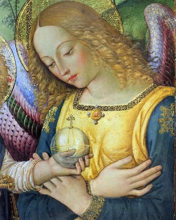 The Madonna of Peace is distinguished by a refined and deeply symbolic composition. The Virgin, seated and monumental, holds the Child, who holds a transparent globe in his hands, an allusion to Christ’s universal dominion and the spiritual dimension of the world.