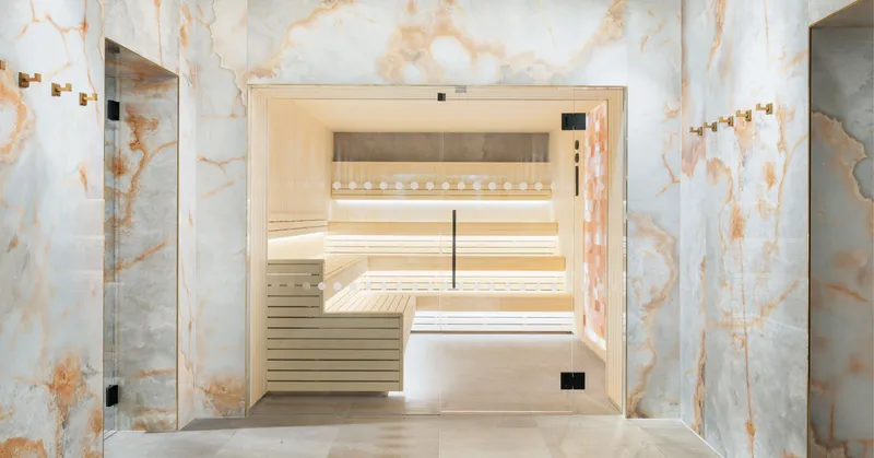 Elemento centrale dell’intervento è il grès porcellanato, materiale dominante dell’intera SPA e declinato attraverso una regia di accostamenti cromatici e finiture calibrate, pensate per differenziare le sequenze spaziali e rafforzare l’identità complessiva del complesso.