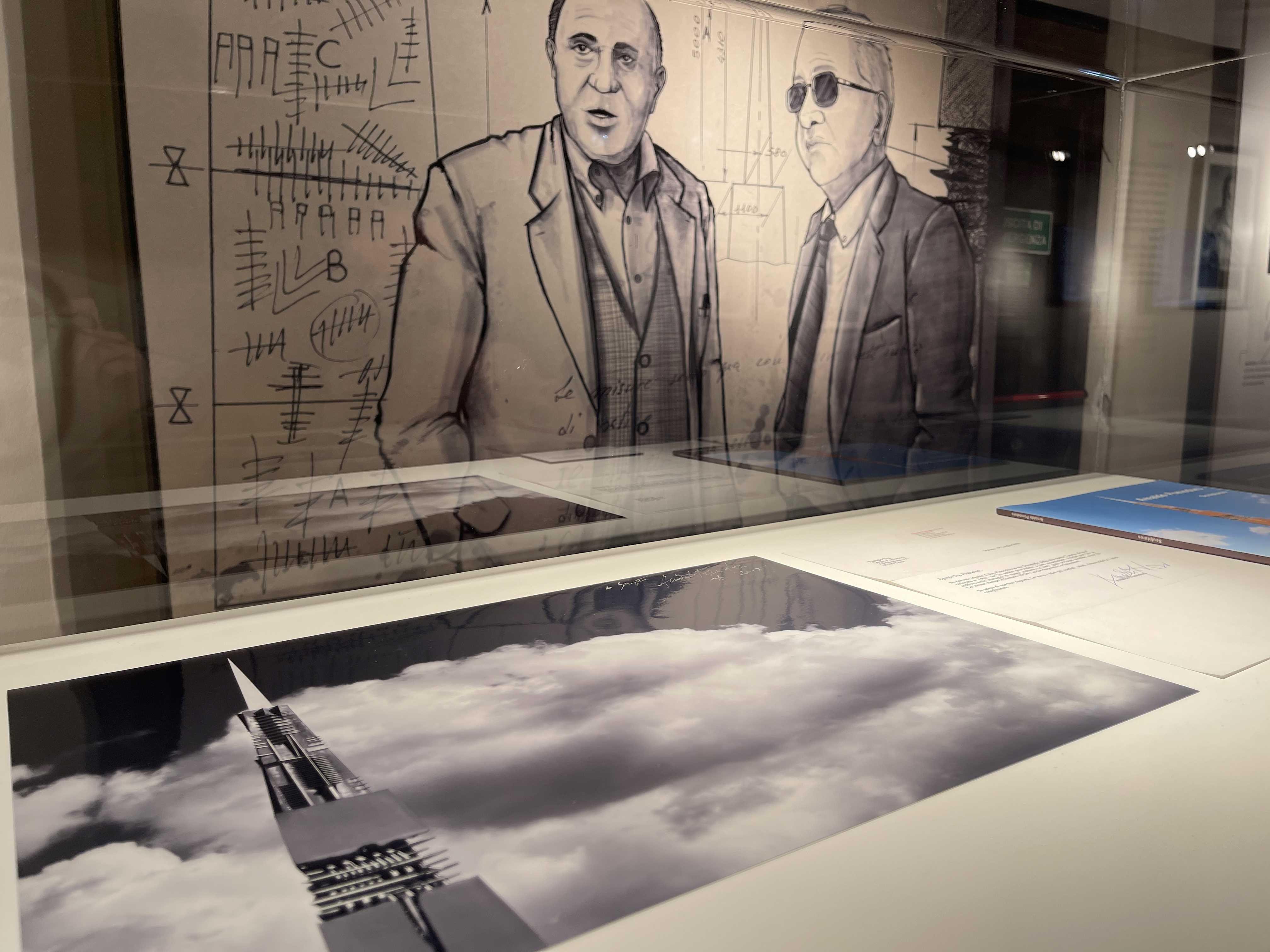 Il percorso espositivo adotta un impianto dichiaratamente multidisciplinare. Fotografie d’archivio documentano le diverse fasi di progettazione e fusione, restituendo la dimensione fisica e collettiva del lavoro. Disegni tecnici, appunti, lettere e materiali documentari consentono di seguire l’evoluzione dell’opera come processo, fatto di tentativi, adattamenti, soluzioni complesse. A questi si affiancano le illustrazioni originali di Filippo Barbacini, che traducono la storia della Lancia di Luce in un racconto visivo che tiene insieme rigore informativo e potenza evocativa.