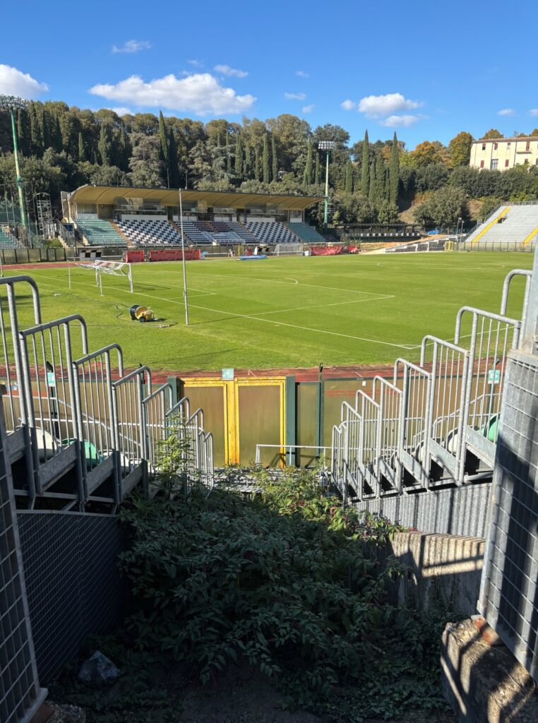 Il suo stadio, anch’esso intitolato ad Artemio Franchi, si trova in una suggestiva valle poco sotto il centro storico. Nonostante la posizione incantevole, l’impianto lascia molto a desiderare: quattro tribune metalliche rimaneggiate nel tempo e un aspetto che tradisce chiaramente l’età.