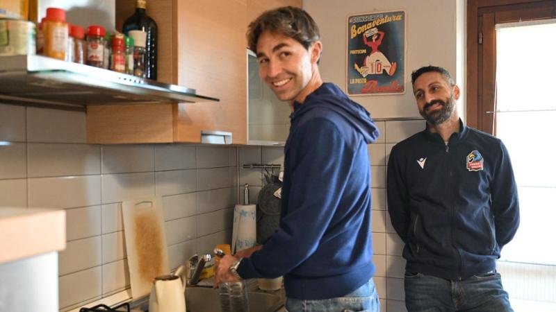 È un venerdì qualunque in cui Domenico Cavaccini si sveglia da capitano della Ma Acqua S.Bernardo Cuneo, e se gli chiedono quale posto chiama casa, la risposta è Cuneo. Nel primo pomeriggio, quando l’allenamento è ancora lontano, nell’appartamento a Borgo San Giuseppe in cui vive con la fidanzata Laura, arriva Daniele Sottile, ex capitano dei biancoblù, oggi amico e confidente, per un rito quasi quotidiano, caffè e chiacchiere. La luce invade cucina e salotto, sul balcone c’è una panchina con vista invidiabile sull’arco alpino. È tra queste mura che Laura lavora in smartworking come account manager in una multinazionale; Mimmo, dal divano, segue due master, di cui uno, in Sport Business Management, in lingua inglese, tre volte a settimana. Ai piedi del divano una chitarra, che strimpellano entrambi a turno, lei impostata, lui autodidatta. Hanno un repertorio internazionale, e a scegliere la colonna sonora del giorno del loro sì, il 25 giugno 2026 a Paestum, dedicheranno la giusta cura. Nonostante la distanza, niente wedding planner: «Stiamo cercando di fare tutto noi».