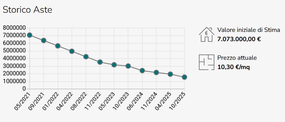 Il giorno decisivo è stato il 16 dicembre con tanto di cosiddetto extratime per concludere la partita: 16 offerte e cifra arrivata a quota 1,2 milioni di euro. Nella primavera 2021, al primo tentativo, il prezzo base era quantificato a quota 7 milioni di euro. Poi mano mano le varie procedure a vuoto e, adesso, il semaforo verde apparso sul portale ufficiale. La vicenda si è sviluppata per via di un concordato preventivo del 2010.