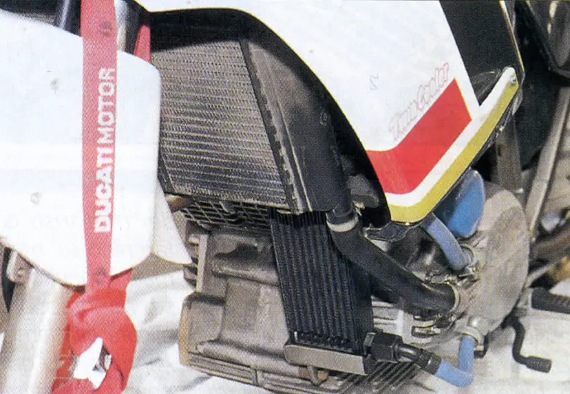 Ecco un dettaglio del nuovo motore inserito in una ciclistica della Cagiva Elefant