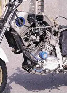 Ecco un dettaglio del nuovo motore inserito in una ciclistica della Cagiva Elefant