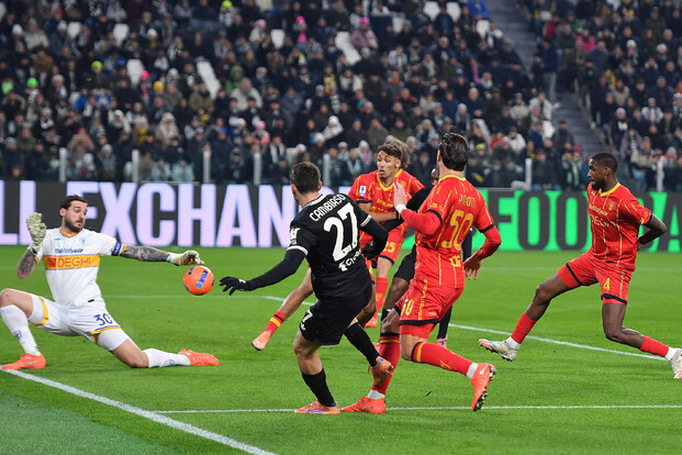 Allo Stadium si rivede anche il grande ex Danilo, “Porto questa maglia nel cuore, volevo ringraziarvi di persona per il supporto che mi avete dato” le parole del brasiliano, osannato da tutto lo stadio. Di Francesco (squalificato, in panchina c’è il vice Del Rosso) sceglie Camarda come unica punta, poi schiera una folta mediana con Ramadani a fare da schermo davanti alla difesa e con Pierotti e Banda a guidare le ripartenze sulle corsie. L’assalto della Juve inizia dopo appena tre minuti, Cambiaso calcia forte ma trova la respinta di Falcone. Passano cinque minuti e il portiere del Lecce è ancora protagonista: Yildiz crossa, David colpisce di testa, l’estremo difensore è bravo e fortunato a deviare sul palo e poi bloccare il pallone che balla sulla linea. Ci prova pure McKennie ma la sua botta è murata dalla retroguardia salentina, Cambiaso ha altre due occasioni e la prima volta trova un’altra deviazione di Falcone, la seconda invece calcia in curva da ottima posizione. Il Lecce trema ma resiste, poi nel recupero passa clamorosamente e sorprendentemente in vantaggio: Cambiaso azzarda un sanguinoso passaggio in orizzontale e invece di trovare Bremer o Kalulu serve Banda, il quale si accentra e con il destro batte Di Gregorio.
