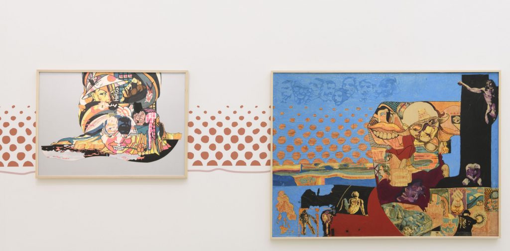 All’interno di Palazzo Ardinghelli, il percorso di mostra, articolato in sezioni cronologiche e tematiche, attraversa l’intera parabola creativa dell’artista, a partire dagli esordi, consentendo di cogliere Pazienza non come “genio irregolare” ma come autore pienamente consapevole, capace di muoversi con disinvoltura tra tradizione colta e cultura popolare, tra pittura e fumetto, tra citazione e sabotaggio. Il segno diventa pensiero, e il pensiero assume una forma visibile, incarnata. Nella prima sala sono raccolti l’autoritratto La mia miniera e Il mio funerale, realizzati rispettivamente a 19 e a 15 anni, insieme al testo scritto Amo composto nel 1974, tre opere che dichiarano una profonda e precoce consapevolezza personale e artistica.