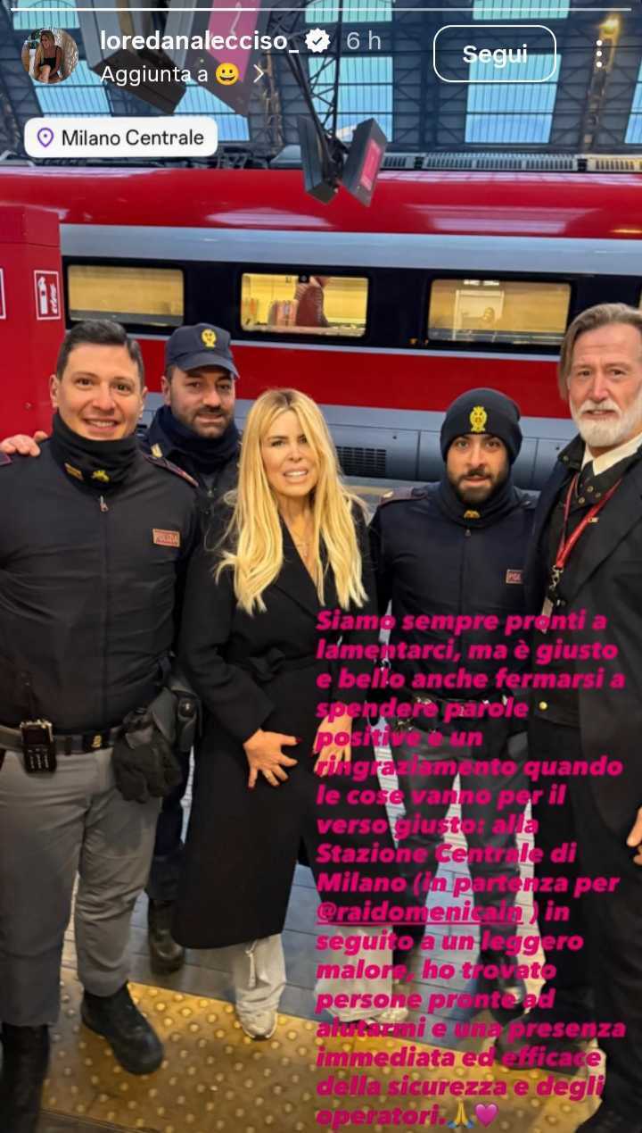 A entrare in studio anche Loredana Lecciso, che prima di arrivare a Domenica In ha avuto un malore alla Stazione Centrale di Milano. «Siamo sempre pronti a lamentarci – scrive la 53enne su Instagram – ma è giusto e bello anche fermarsi a spendere parole positive e un ringraziamento quando le cose vanno per il verso giusto.