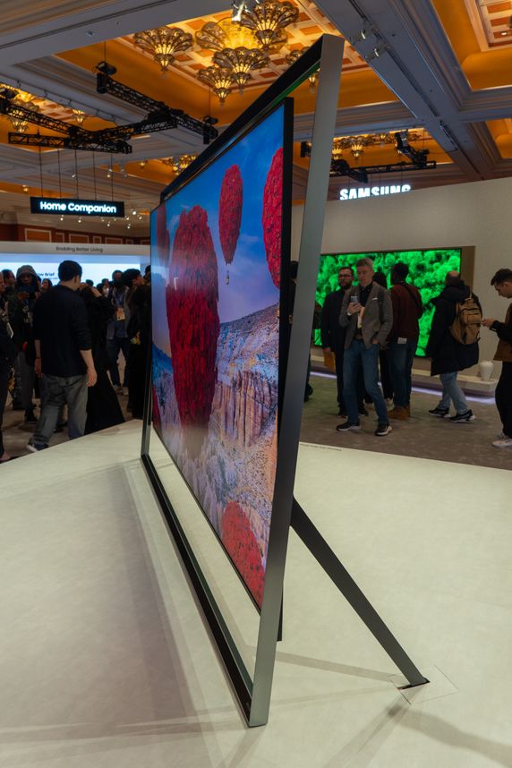 Come sua consuetudine, Samsung al CES 2026 non è entrata troppo nei dettagli tecnici del nuovo prodotto, concentrandosi soprattutto sul design di quello che ha battezzato “Timeless Frame”, sostanzialmente un piedistallo a lavagna che consente di appoggiare il monumentale schermo direttamente a pavimento.