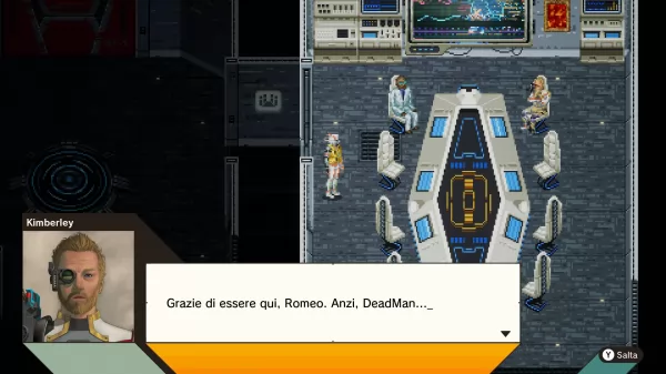 Non si può certo dire che Romeo is a Dead Man sia un gioco poco originale e, in perfetta linea con tutto il resto, troviamo l’hub centrale. La nave spaziale dell’FBI è infatti la nostra base operativa e non è affatto come ve la state immaginando: quando si fa ritorno in questo luogo, cambia sia la grafica che la visuale, visto che si gioca con la telecamera dall’alto e in pixel art.