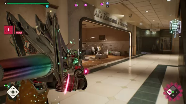 Accumulare risorse per i potenziamenti non è poi così difficile, anche perché il gioco è sì lineare, ma permette anche il farming grazie a checkpoint che funzionano in maniera pressoché identica ai falò di Dark Souls: quando si interagisce con questi schermi a forma di croce verde, i nemici riappaiono e si ha la possibilità di salvare i progressi, tornare alla base o accedere ai potenziamenti.