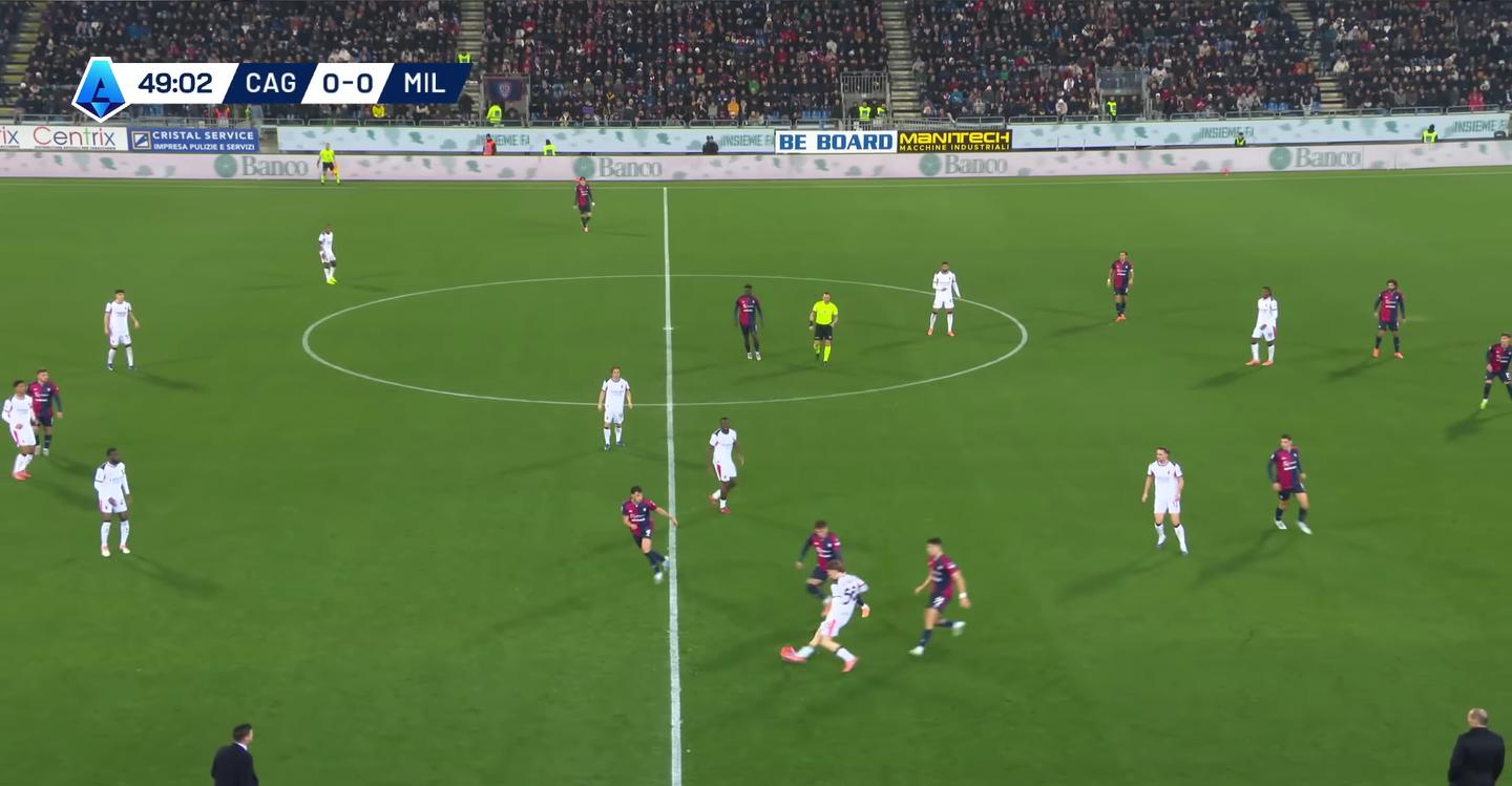 Due delle triangolazioni che, come a Cagliari, hanno permesso al Milan di segnare a difesa schierata. In entrambi a ricevere palla è il vertice del triangolo, mentre il terzo uomo (rispettivamente Bartesaghi, che segnerà, e Tomori, che assisterà Leão) è già pronto alla ricezione in corsa alle spalle del proprio marcatore.