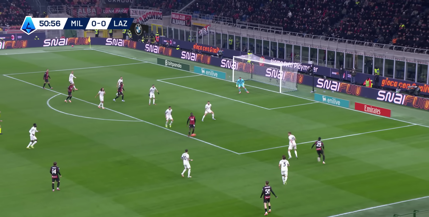 Un altro aspetto di cui si parla poco è la creatività con il pallone. Il Milan è più fluido e qualitativo di quanto si dica: capita spesso che i suoi giocatori si associno con rapide triangolazioni, riuscendo a trovare ottime occasioni anche contro difese schierate. In pochi in A possono schierare giocatori con la qualità con la palla di Modric, Pulisic, Saelemaekers, Leão. Quando si associano possono combinare in azioni bellissime che a uno spettatore che non guarda le partite risulterebbe difficile associare ad una squadra di Allegri, ma che possono nascere anche grazie al contesto tattico. Ne aveva parlato Emanuele Mongiardo circa un mese fa, vivisezionando alcune delle migliori azioni offensive dei rossoneri.