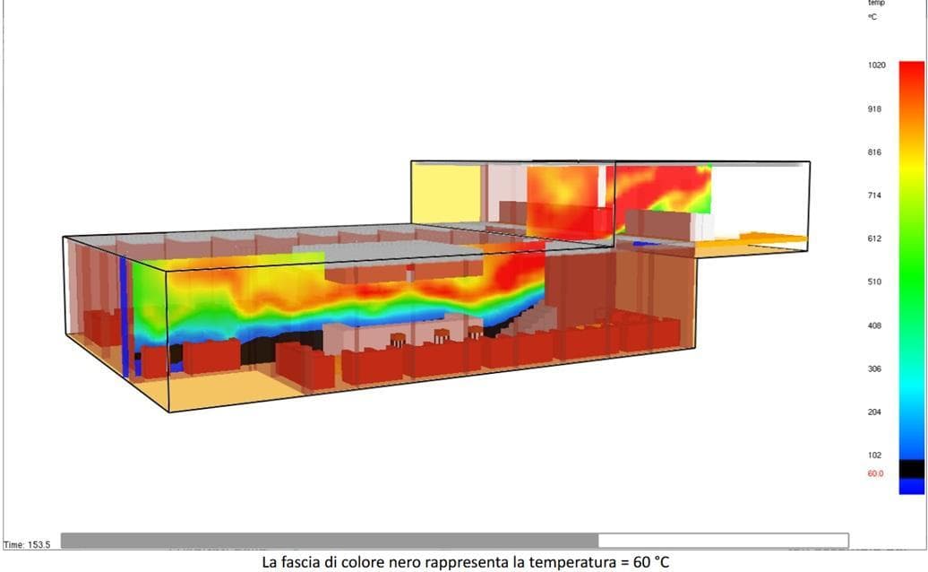 “La temperatura, che al momento del deflagrare delle fiamme era di circa 600 gradi all’altezza del soffitto, con il progredire dell’incendio ha toccato i 1.200 gradi, mettendo a rischio anche la struttura dell’edificio” spiegano. “La mancanza di finestre e di ossigeno ha poi limitato le fiamme, facendo tornare la temperatura rapidamente sotto ai 600 gradi”. La loro ricostruzione ha valore solo scientifico, non legale, ed è in via di pubblicazione sul sito specialistico che si occupa di Fire Safety Engineering (www.fse-italia.eu).