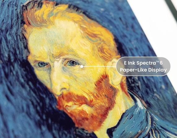 Il modello più estremo visto in fiera è InkPoster Duna, sviluppato da InkPoster in collaborazione con Pininfarina. Utilizza un pannello a colori E Ink Spectra 6 in formato A1 da 40,5”, con risoluzione 3060×4320 pixel.