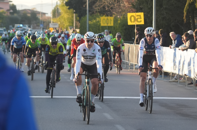 Altopascio (LU). La bella giornata di sole senza vento ha invogliato una buona fetta del panorama ciclistico amatoriale a cimentarsi nella prima gara stagionale in Toscana per le categorie Master. Sono stati 173 dei 182 atleti iscritti, a prendere il via al 1° Trofeo Spianate Race, organizzato dal Cycling team Lucca con il patrocinio del comune di Altopascio. Il percorso di gara l’ormai collaudato circuito di 9650 metri da ripetersi 7 volte e un totale di 70 km.