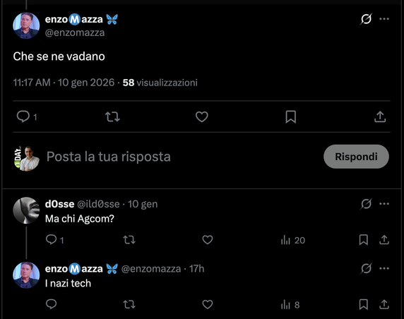 Pur da grande estimatore di Elon Musk, che considero il più visionario degli innovatori mondiali, penso che sulla difesa della creatività e sul contrasto alla pirateria digitale non si debba arretrare di un centimetro e non abbia nulla a che vedere con gli investimenti delle big tech Usa su cui sta collaborando il governo italiano.Auspico che, in futuro, avrai più rispetto, da italiano, del Parlamento della tua Nazione e delle sue leggi, volte a tutelare proprio gli investimenti di cui parli. Ti auguro uno splendido 2026 di innovazione nella legalità.