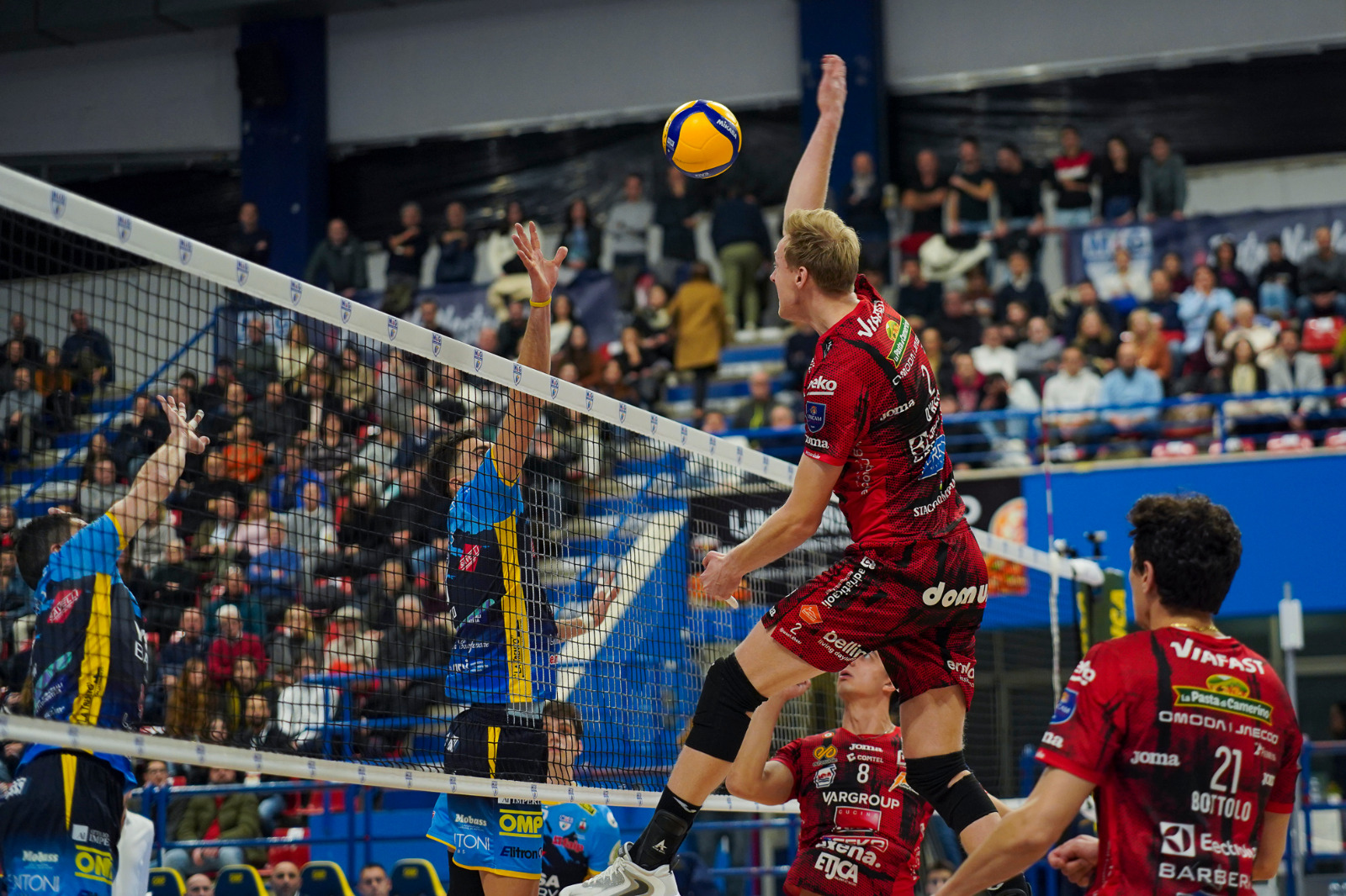 Cucine Lube Civitanova: D’Heer 7, Gargiulo 7, Loeppky 7, Orduna, Bisotto (L2) ne, Balaso (L1) 44% (28% perf.), Boninfante 3, Nikolov 18, Kukartsev 1, Podrascanin 2, Bottolo 10, Duflos Rossi 2, Tenorio 2. All. Medei Viceall. Oleni