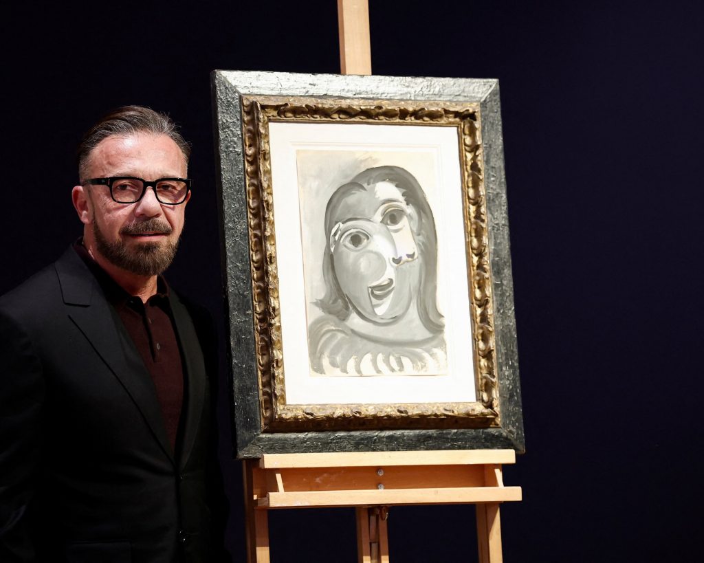 Olivier Picasso con Tête de femme. Photograph: Benoît Tessier/Reuters