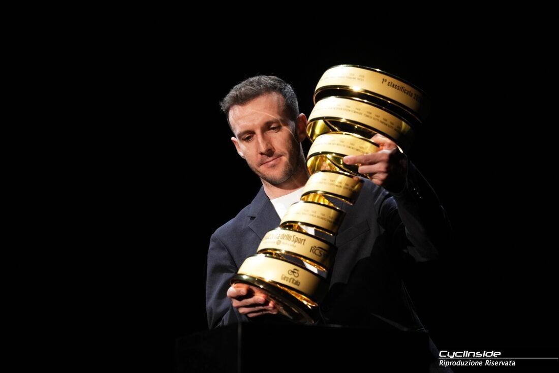 Simon Yates con il Trofeo Senza Fine del Giro d’Italia (foto: Massimo Paolone/LaPresse)