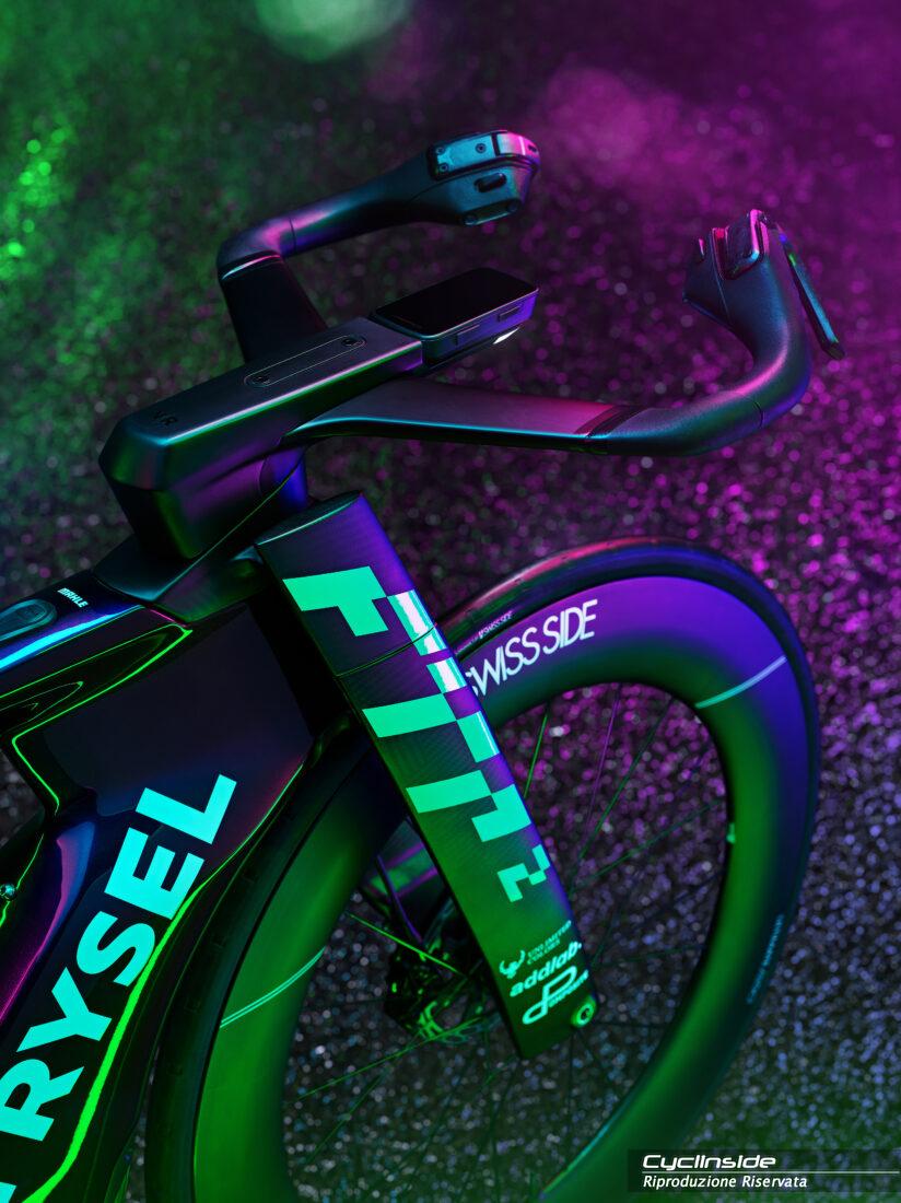 Completano la bici una trasmissione SRAM Red AXS con pedivelle in carbonio Praxis e ruote: SWISS SIDE Hadron³ 850, le più aerodinamiche del marchio elvetico delle ruote.